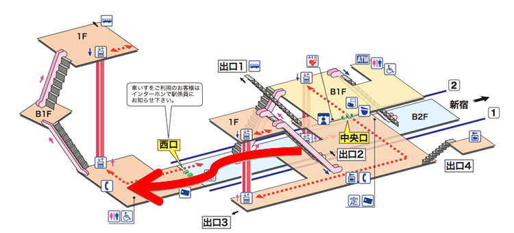 改札を出る前に京王八王子西口改札出口ででていただき、