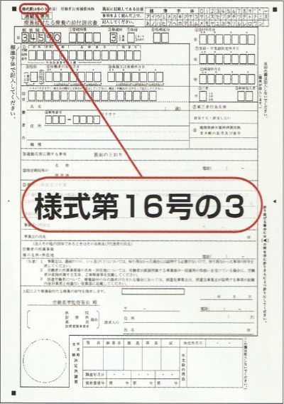 ※ 労災保険指定薬局で薬剤の支給を受ける場合も、同様の様式 (5号、16号の3、 6号、16号の4) が必要となります。
